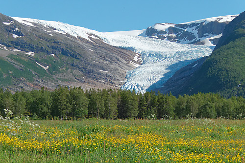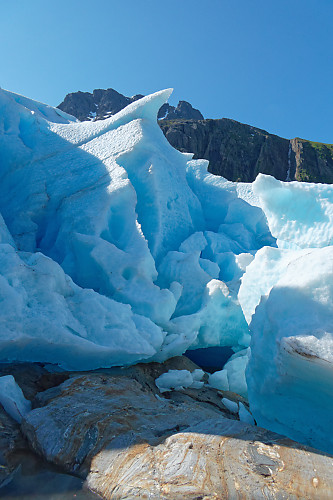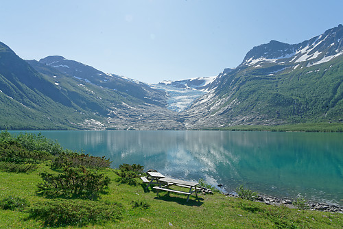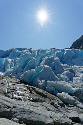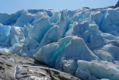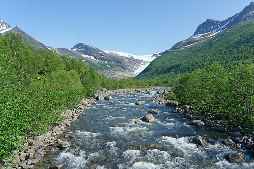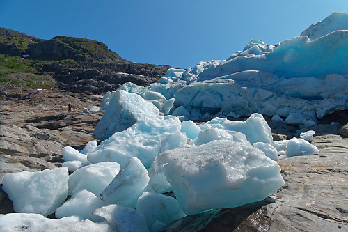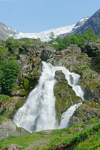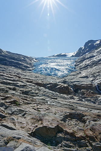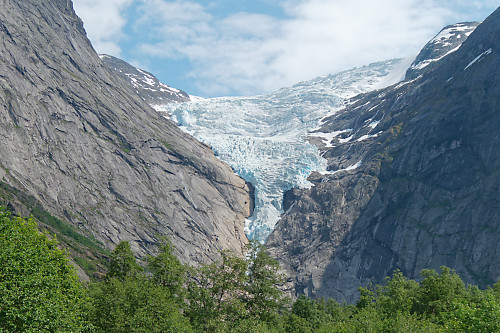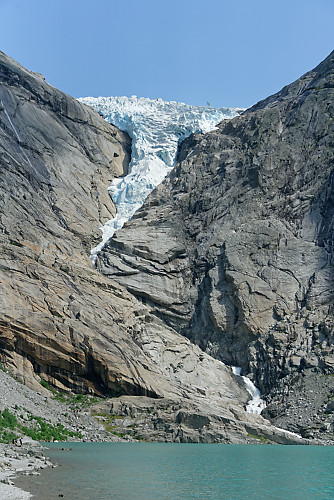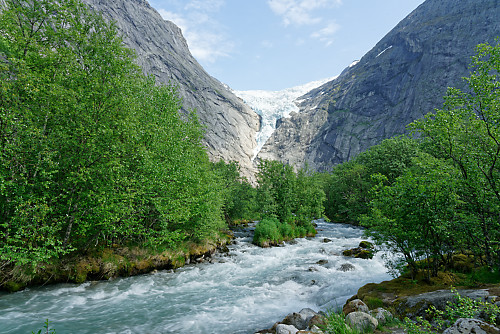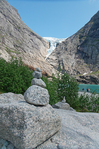 Der Briksdal-Gletscher ist ein westlicher Nebenarm des Jostedalsbreen, dem größten Festlandgletscher Europas. Seit ca. 1870 ist der Gletscher um gut 2 km zurückgewichen. Da der Gletscher relativ leicht zu erreichen ist, ist er auch ein Tourismusmagnet. Sogar einen Shuttleservice fast bis zum Gletschersee gibt es.