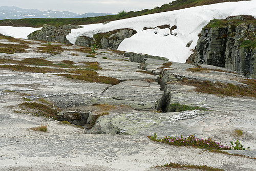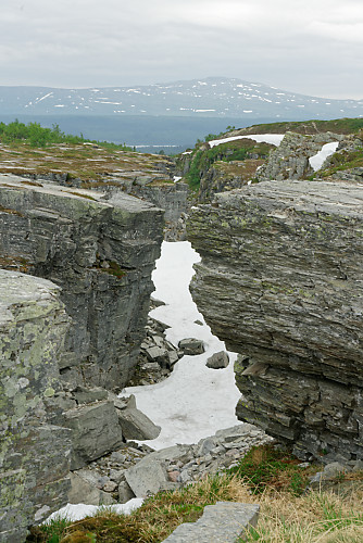Die Flatruet besteht aus vielen Schluchten. Die bekannteste ist Evagraven. In ihr liegt bis in den Sommer Schnee, weil kaum Sonnenlicht einfällt.