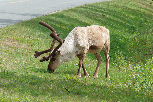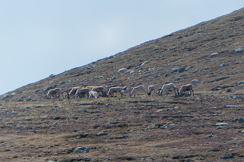 Am nächsten Tag unternimmt Maxi eine Erkundung der Gegend. Harald muss leider mit einer Magenverstimmung im Bus bleiben. Zuerst entdeckt sie wieder Schafe und dann noch eine Schafherde - aber bei genauerer Betrachtung sind das: Rentiere!