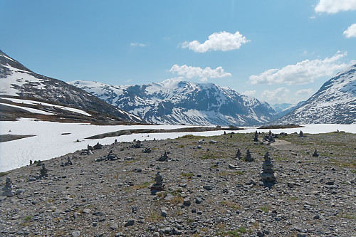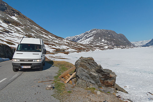 Am Weg zum Geirangerfjord kommen wir über einen Pass, bei dem das Gefühl aufkommt: ganz ist hier der Winter noch nicht vorbei.