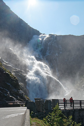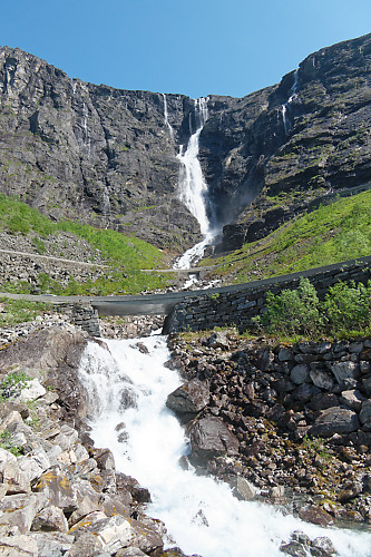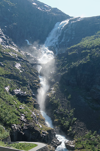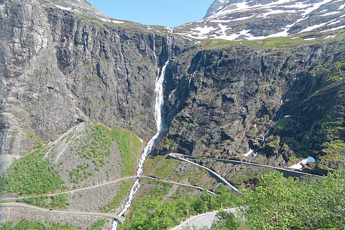 Am Weg Richtung Osten nach Reinheimen kommen wir am Trollstigen vorbei. Auf den Pass führt eine Straße mit 11 Kehren, die die Namen der Vorarbeiter tragen, die für den Abschnitt verantwortlich waren, vorbei am Wasserfall "Stigfossen", der 320 Meter in die Tiefe stürzt.