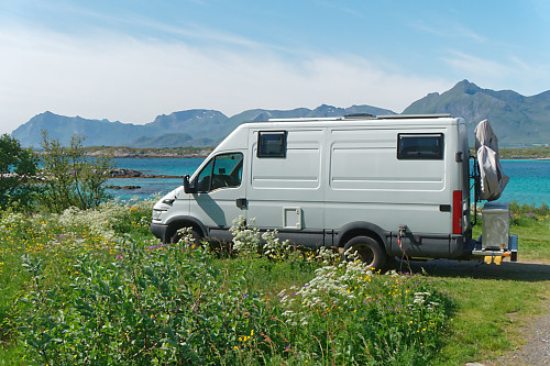 Wir haben genau 10.000 km hinter uns, als wir von der Fähre auf die Lofoten fahren. Die Gruppe aus 80 Inseln im Norden Norwegens ist durch ihre Berge (bis zu 1200 m Höhe) und Küsten bekannt und daher ein