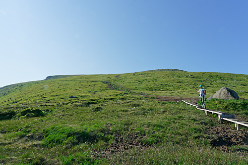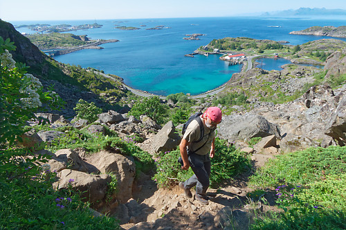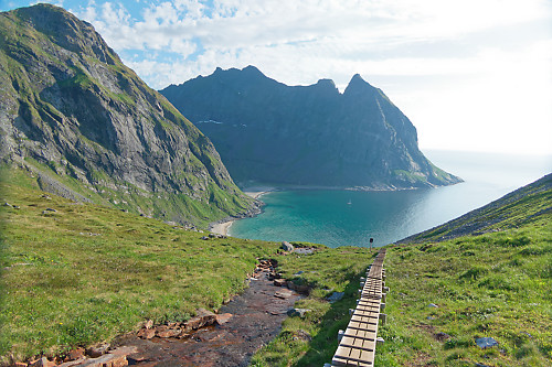 Da Harald vom Fahren noch etwas müde ist, entscheidet sich Maxi die Besteigung des Måtind zu einer Wanderung über den Måtind nach Bleik, wo Harald schon den Campingplatz sichert, umzuwandeln.