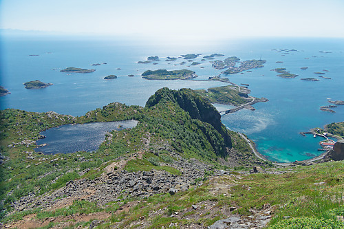 Im Unterschied zu den Lofoten mit den relativ schmalen Inseln und hohen Bergen sind die