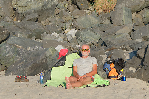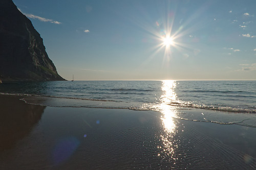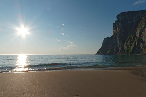 Dennoch war es die Mühen wert: Sandstrand, Sonnenuntergang und auch ein Bad im Nordmeer ...