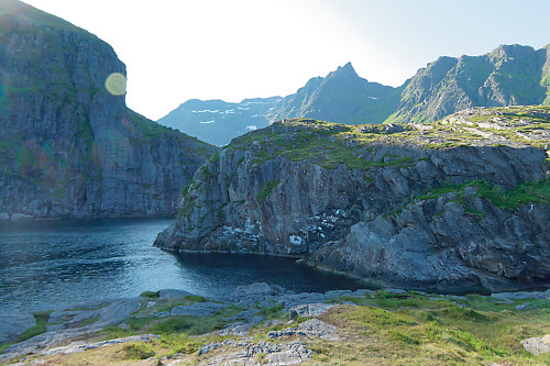 Das Wetter wird mal wieder schlechter und wir suchen einen Campingplatz. Wir finden einen am Trollfjord. 2 Tage später wird das Wetter wieder besser und wir machen die Wanderung auf den Festvågtind. Maxi muss ganz auf den Gipfel, Harald macht am See (der früher das Trinkwasserreservoir für Henningsvær war) halt.