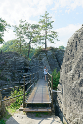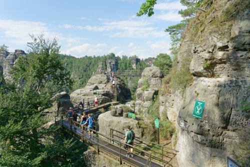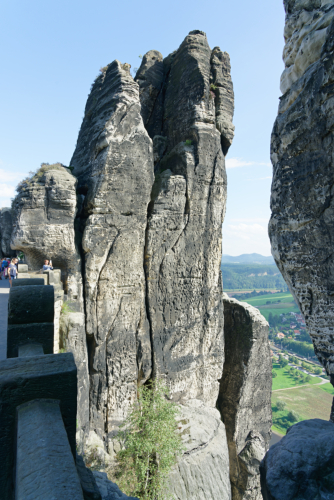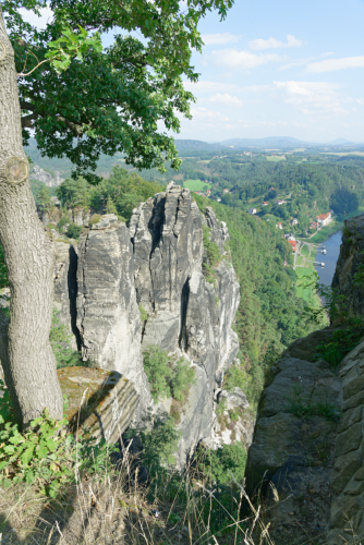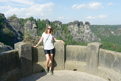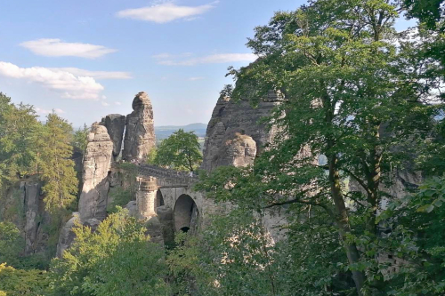 Wir haben Schweden mit der Fähre von Trelleborg nach Rostock verlassen. Am Weg nach Hause machen wir (nachem wir Freunde in Berlin besucht hatten) an der Elb-Bastei halt. Die Fels-Bastei wird 1592 erstmals urkundlich erwähnt und war in den Verteidigungsring der Felsenburg Neurathen eingebunden. Heute sind nur Ruinen der Felsenburg zu besichtigen. Von den Felsen bietet sich ein wunderschöner Ausblick auf das Sandsteingebirge am rechten Ufer der Elbe.
