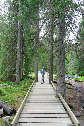 Im Nationalpark Fulufjället gibt es Moore, den höchsten Wasserfall Schwedens (den Njupeskär) und die älteste Fichte (fast 10000 Jahre) der Welt. Allerdings ist der Baum nicht selbst so alt, sondern der Wurzelstock aus dem er wächst. Leider übersehen wir die Abzweigung zum "Old Tjikko", wie die Fichte hier genannt wird. Die Wanderung rund um den Wasserfall ist aber auch wunderschön.