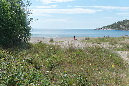 Das Naturreservat Rotsidan gehört zum Weltkulturerbe Högakusten und ist ein mehrere kilometerlanger Strandabschnitt mit flachen Felsplatten bis ins Meer.